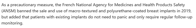 法国国家药品与健康产品安全局(ANSM)虽在 2019 年以预防为由,禁止毛面假体及聚氨酯涂层假体的销售与使用,但同时补充说明:已植入毛面假体的求美者无需恐慌,仅需定期随访监测即可。加拿大卫生部在暂停某品牌毛面假体上市许可的同时,要求制造商完善术后监测指导文件,强化长期健康跟踪。