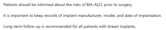 参考《FDA 安全通告》《TGA suspends eight major breast implants》监管建议