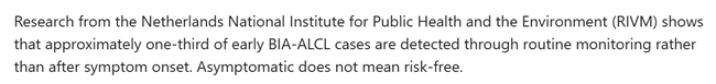 医疗界明确反驳:BIA-ALCL 潜伏期长达 3-14 年,早期症状隐蔽、轻微,易被误认为术后正常反应。荷兰国立公共卫生和环境研究所(RIVM)研究显示,约 1/3 早期 BIA-ALCL 病例通过常规监测发现,而非症状爆发后确诊,无症状绝不代表无风险。